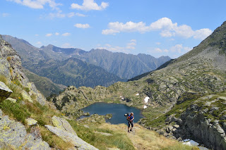 Anem pujant i fins als estanys de Sens raja aigua per tot arreu. D'aquí ens enfilem cap a la collada del Mont-roig i fem el pic Tartera (2.846 m). Són les 9 del matí. A partir d'ara només hem de carenejar fins anar al pic Mont-roig (2.864 m). En mitja hora hi som. Hem hagut de crestejar una mica amb algun pas exposat. Mengem quatre galetetes i altra vegada avall. Perdem el camí i decidim tirar pel dret. Arribem al campament vora les 12 del migdia. Recollim els trastos i davallem fins al càmping de Graus, on dinarem a les 3 de la tarda.![]() |