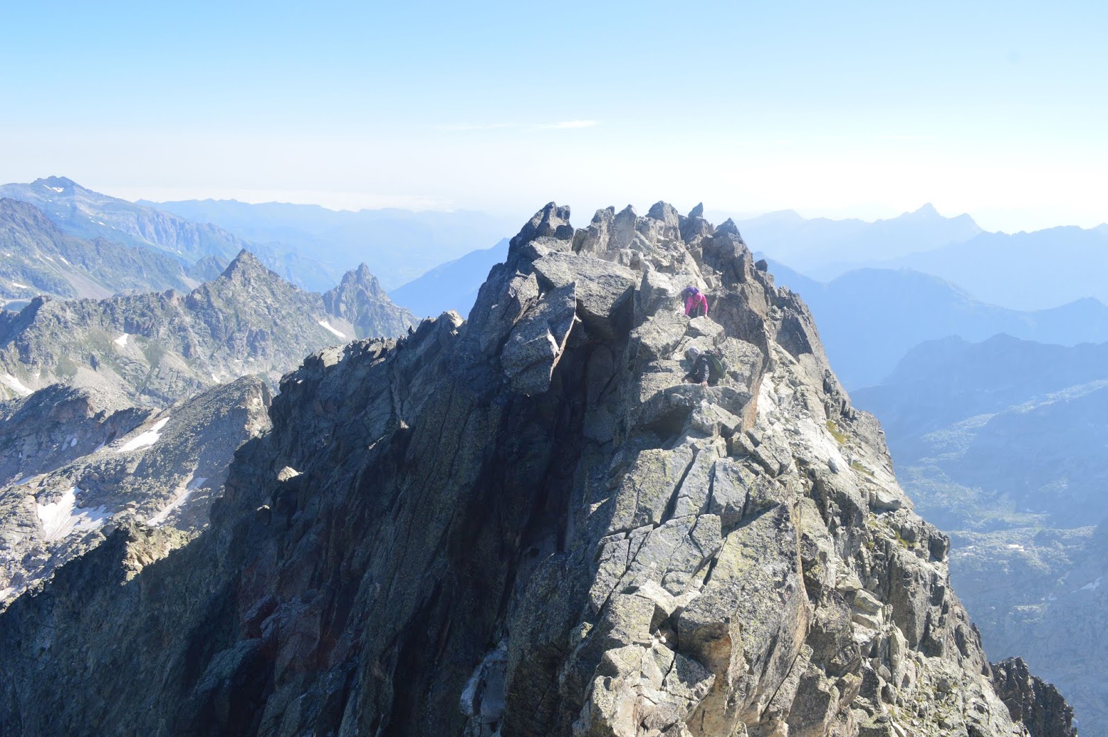 Diumenge. Ens llevem amb una lluna plena, núvols i vent. Esmorzem i a les 7 i 20, tapadets, comencem a caminar. Avui fem una circular. Anem cap al llac Palas i anem pujant terrassetes fins a la bretxa dels Geodésicos. Travessem uns metres de neu aquí comença la cresta dels Geodésicos, on, en alguns trams, és molt exposada i hem d'anar en compte. De mica en mica l'anem superant i fem el cim Palas (2.974 m) a 2/4 d'11. El vent ha parat i tenim unes vistes espectaculars. Mengem una mica i, mentre ho fem, puja un grup del bascos pel camí que hem de fer al baixar. Esperem que arribin i així ens podran tirar la foto, perquè al cim no hi ha lloc per poder plantar la càmera. Feta la foto, comencem a davallar vigilant a no fer caure pedres ja que es desfà tot. Arribem al pas difícil: la xemeneia Ledormeur, que fem sense cap problema. Baixem fins al coll de Palas i més avall trobem neu molt desfeta. Arribem al refugi a les 3. Mengem una truita amb formatge, que és l'únic que ens ha volgut fer l'encarregada del refugi. Recuperats, continuem baixant fins al cotxe, on fem cap a les 6. Una mica tard, ja que hem perdut molt de temps als passos difícils. Ha valgut la pena: un lloc espectacular.